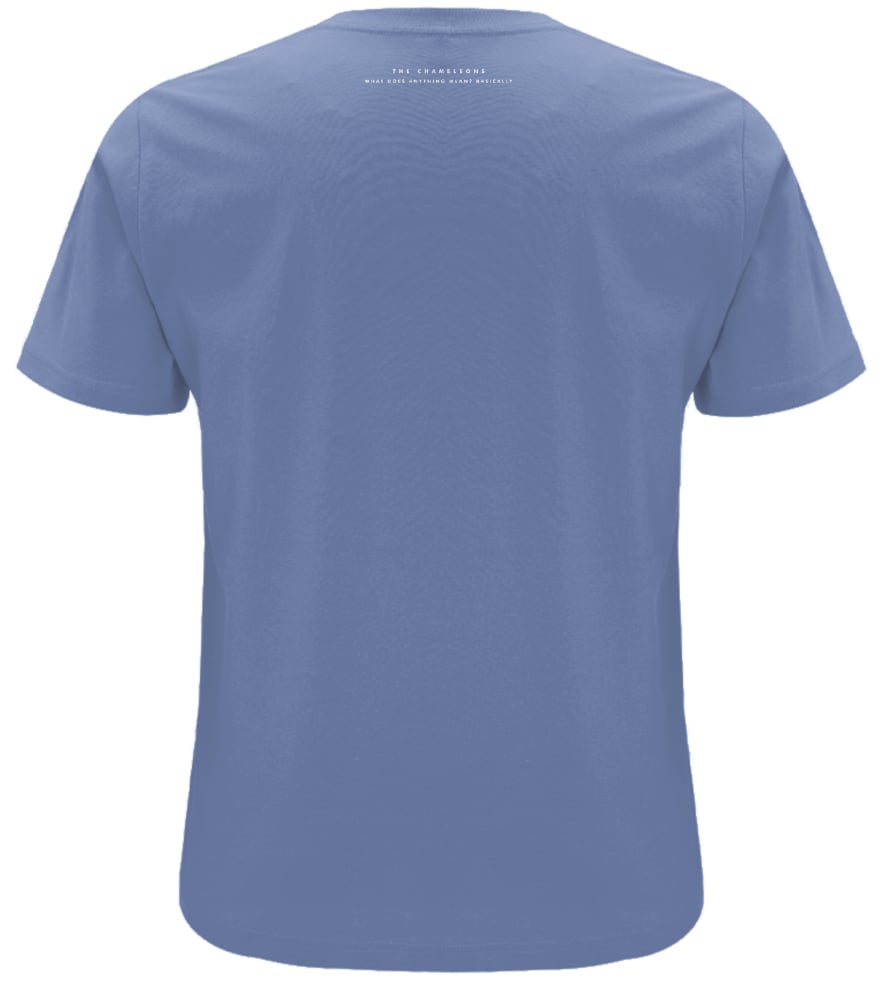 The iconic WDAMB album image faithfully reproduced on a premium quality cotton t-shirt with the words “The Chameleons / What Does Anything Mean? Basically” featured on the back. This shirt is screen printed to the highest possible standard, resulting in an incredible level of detail. All Merchandise purchased from this site is fully endorsed by the band and all original members receive a share in the profits.